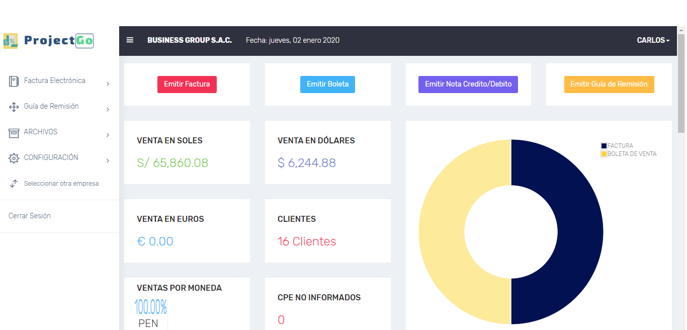 Dashboard principal que te permite tener una visión general de tus ventas.